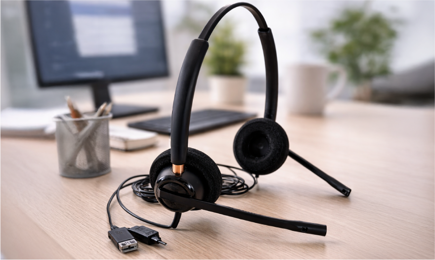 - Stereo audio separation – the headset intelligently splits audio between the left and right ears. One ear receives real-time voice feedback from JAWS (or any other screen reader), announcing everything the user types or navigates on the computer. the other ear is dedicated to telephony audio, allowing crystal-clear phone or softphone conversations without interference from screen-reader speech.